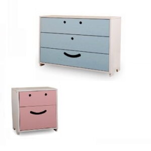 MESA PERGAMINO DE LUZ TOY 2 CAJONES BCO CELESTE