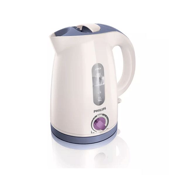 Indicadores de nivel de agua a ambos lados del hervidor eléctrico Philips, ideal para zurdos y diestros.